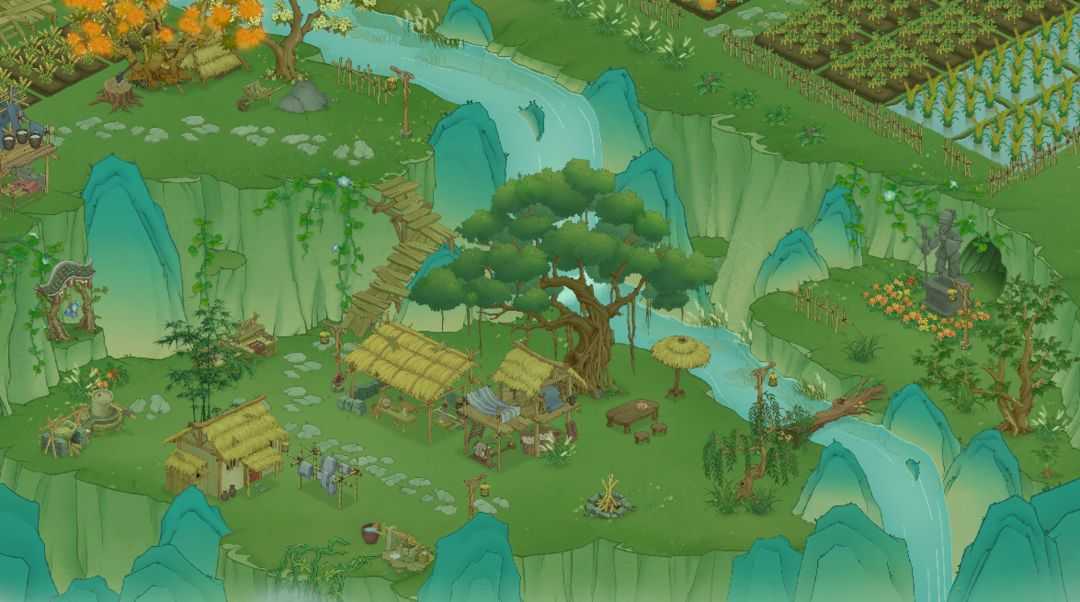 初始區域僅能滿足初期發展所需,待谷主們完成新手引導并修通山路后,便可抵達小村。