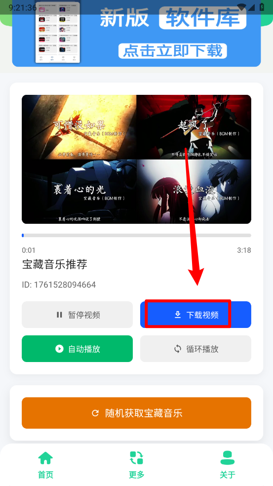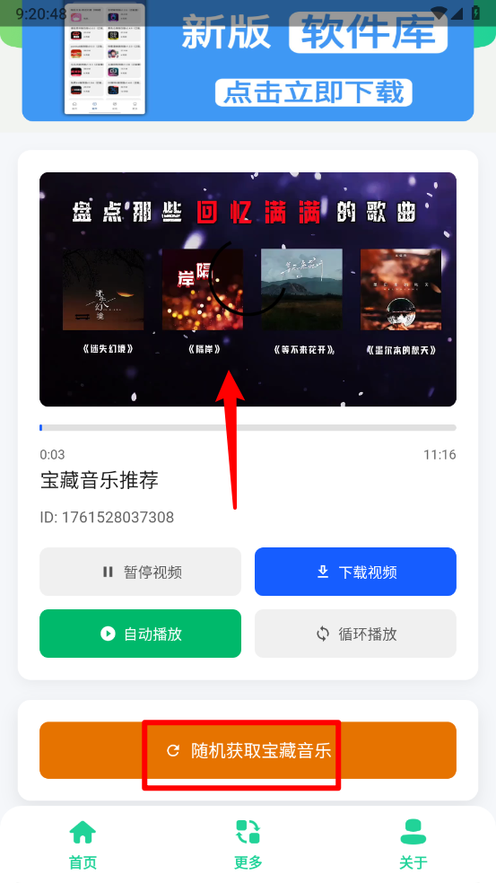 在主頁就能直接播放對應的音樂,點擊“隨機獲取寶藏音樂”按鈕就行。