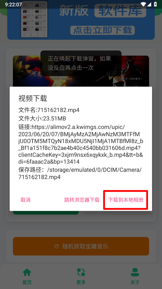 彈出提示框,點擊"到本地相冊"。
