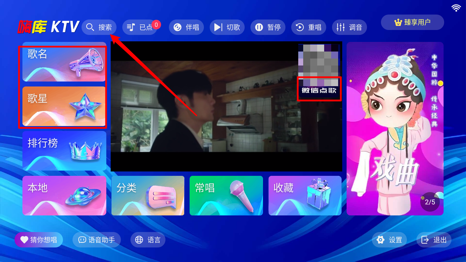 嗨庫KTV是電視端的家庭移動練歌應(yīng)用,一鍵開啟即可暢享專業(yè)KTV級別的歡唱體驗。它支持歌名、歌星、關(guān)鍵字、微信點歌等多種點歌模式,不僅擁有海量熱門歌曲,還能讓你與好友在線PK,結(jié)識志同道合的音樂愛好者,足不出戶就能盡情歡唱。