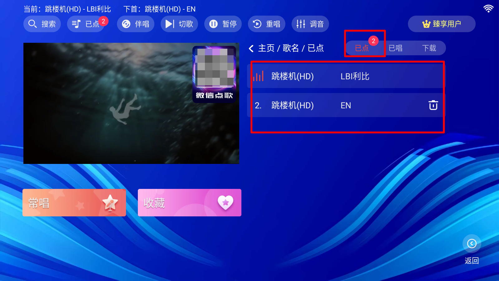 進(jìn)入"已點"板塊,就可以查看所點的歌曲。