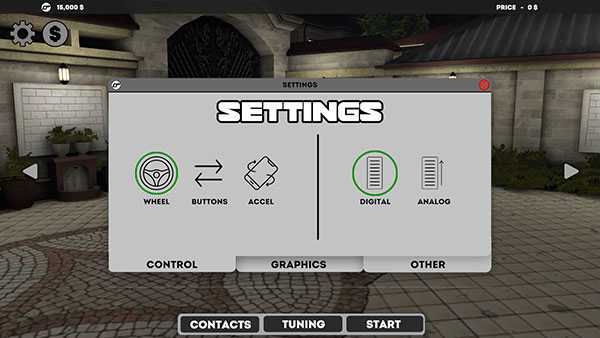 點擊右上角的“設置”圖標,就能對駕駛方式進行設置,可選擇方向盤控制或者手機晃動控制。