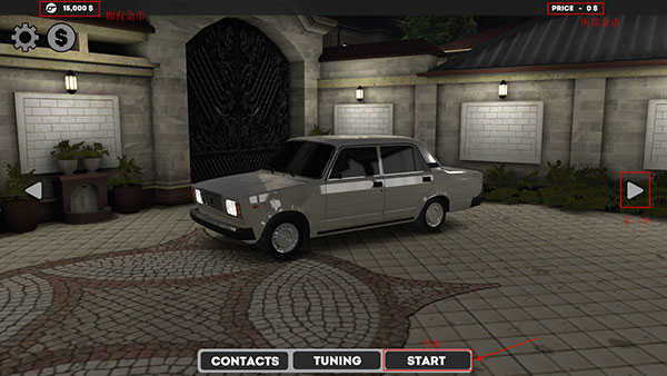 進入游戲后,映入眼簾的是選車界面:畫面中央展示著待駕駛的車輛,左上角顯示玩家持有的金幣數量,右上角標注著該車輛的所需金幣;界面下方的“start”按鈕用于啟動游戲,而點擊中央右側的區域則可以切換其他車輛。