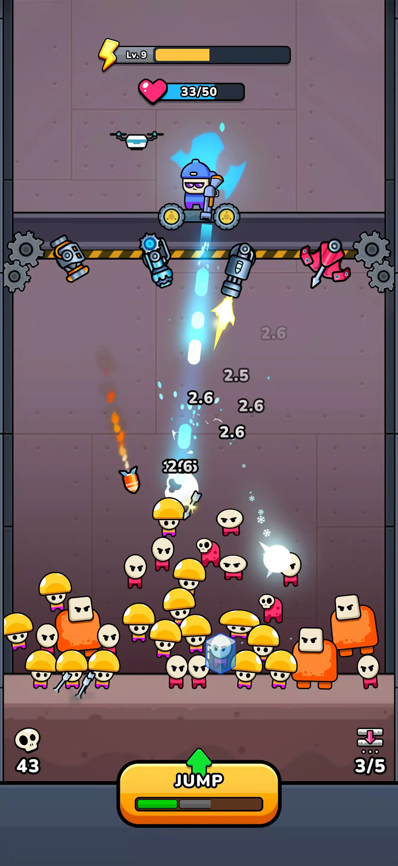 獨特的堆疊式敵人:這些敵人會層層堆積,搭建成高塔來攻擊你的平臺。你得在他們爬得過高之前,持續不斷地射擊!