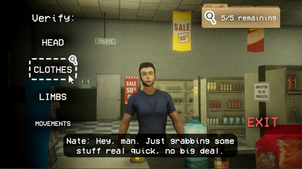 證件核驗與異常行為識別:每位顧客持有隨機生成的證件信息,玩家需要對照電腦數據庫進行核驗,并識別15種恐怖破綻提示,例如肢體扭曲、瞳孔反光等。