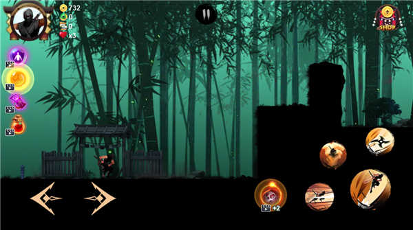 左側是左右方向的操作鍵位,右側則對應跳躍、攻擊、沖刺攻擊和隱身功能。