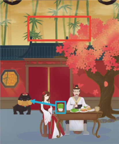 在《花木蘭的那些事》這款游戲里,第一步我們得先把桌子上的雞腿拿起來。