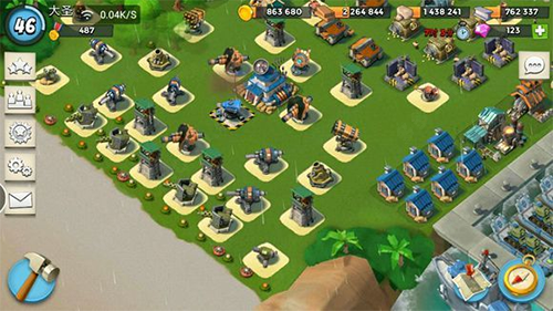 畫面和之前的COC、卡通農(nóng)場風(fēng)格相近,整體走卡通路線,大海部分做得十分精致,層次感很豐富。