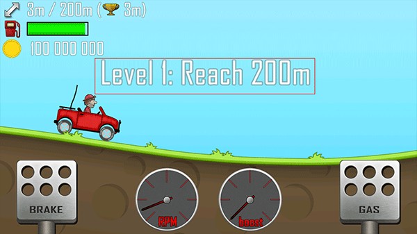 進入游戲后,系統(tǒng)會給你一個目標(biāo),例如駕駛汽車到達200m。然后我們利用左右前進后退兩個按鈕來駕駛汽車