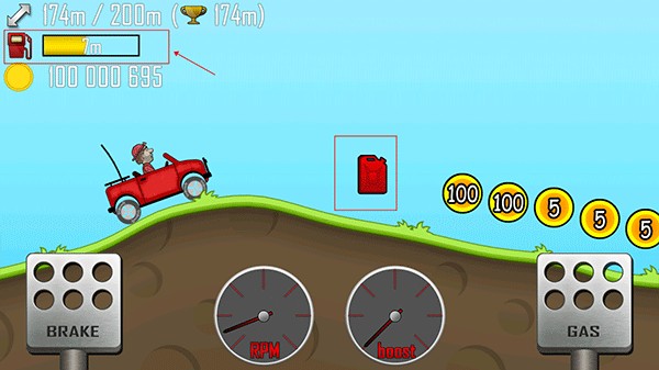 游戲界面左上角會顯示你的汽車燃料,當(dāng)燃料不足時你需要盡快拾取汽油桶來為車輛增加燃料