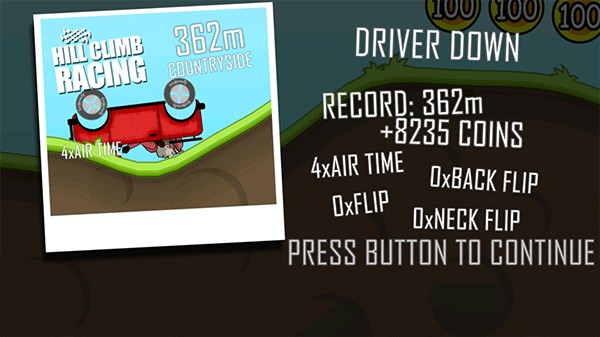 當(dāng)出現(xiàn)翻車、燃料不足等情況時,游戲就會結(jié)束啦,然后系統(tǒng)會根據(jù)你的成績對你進行獎勵