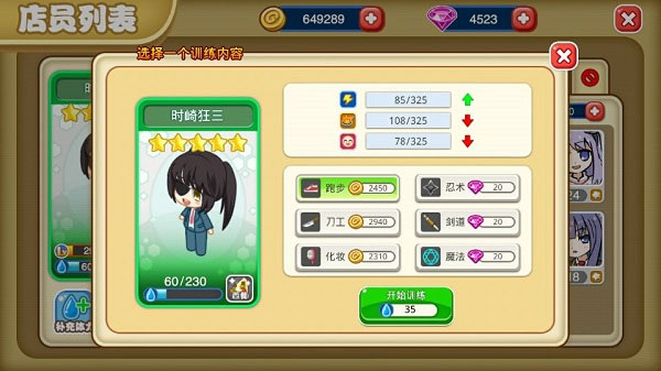通過訓練選項可以提升店員的三項工作屬性,不僅能提升工作效率,也可以在店員評比中得到更高的評分