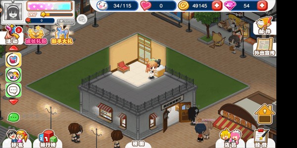 在宣傳時還有幾率撿到一兩個鉆石以及禮物、體力藥等道具,同時也能回復少量人氣值,偶爾運氣好還能得到個家具。如果不想耗費體力,也可以派遣借來的店員去宣傳,但也需要該店員的體力上限大于所需耗費的體力才能成功開始哦。