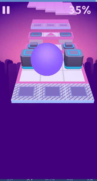 期間無需上滑使球跳起,方向最重要,會自動躍過方塊,只需操縱落點方位,遇到紅色圖案的鉆石,滾到所在位置吃掉,一路沿著縫隙處穿滑而過即可。