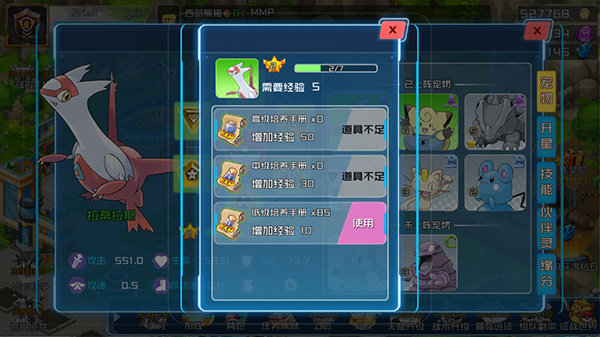 在培養所的寵物界面中,點擊羅盤下方的加號按鈕,選擇培養手冊,單擊使用就可以為自己的寵物精靈增加相應的經驗啦!