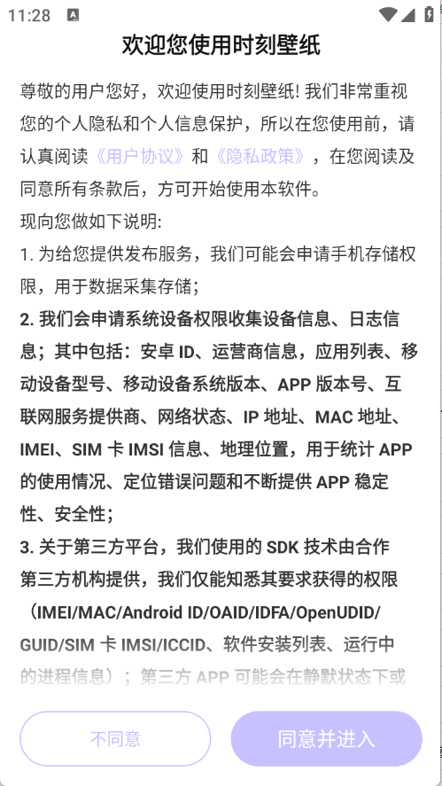 用戶首先需在本站使用時刻壁紙功能,在此之前要查看并同意隱私政策與用戶協議。