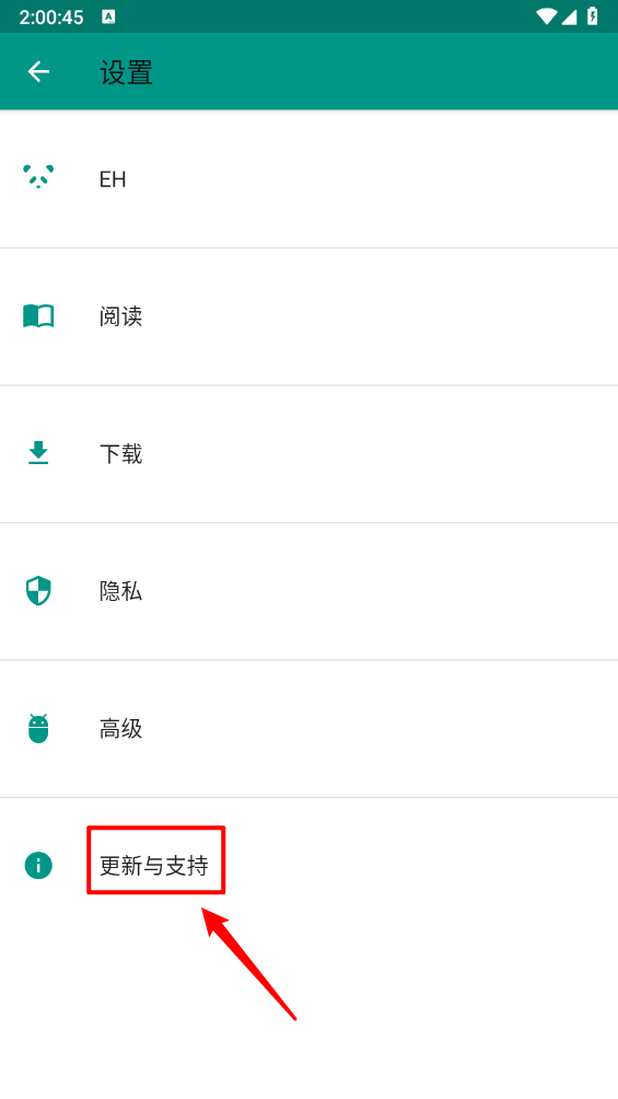 然后在設(shè)置頁(yè)面點(diǎn)擊"更新與支持"。
