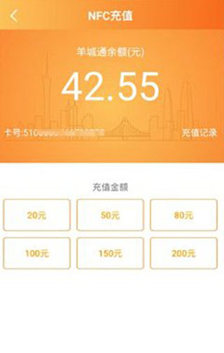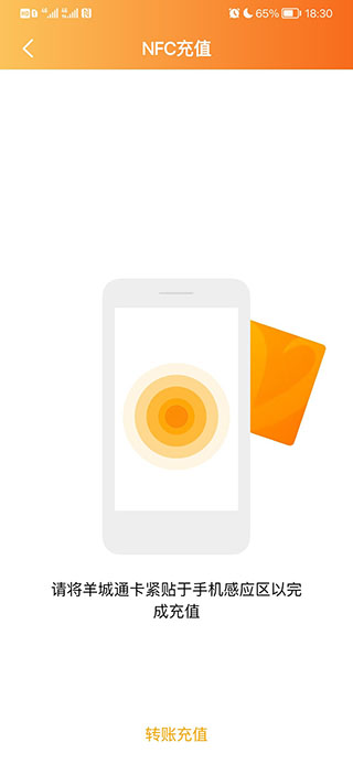 點擊進入后,開啟NFC功能,把羊城通卡緊密貼合在手機的感應區域。