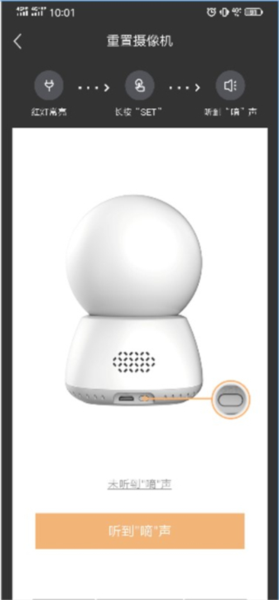 長按設(shè)備背部的set按鍵,待聽到“滴”的提示音后,點擊“聽到滴聲”按鈕。