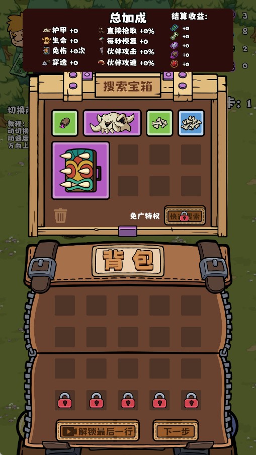 和傳統肉鴿生存冒險游戲比起來,《叢林抵御戰》更看重局外的角色養成。游戲里能自定義裝備池的設定,讓玩家在搭建裝備體系時可以更自由,能挑選自己喜歡的裝備池,構建出最契合自身玩法風格的流派組合,從而獲得更富趣味性的游戲體驗。