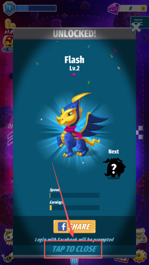 然后,當金幣數量攢夠后,界面會顯示“UNLOCKED! Flash Lv.2”,此時點擊“Next”按鈕,就能提升自動產出金幣的速度。