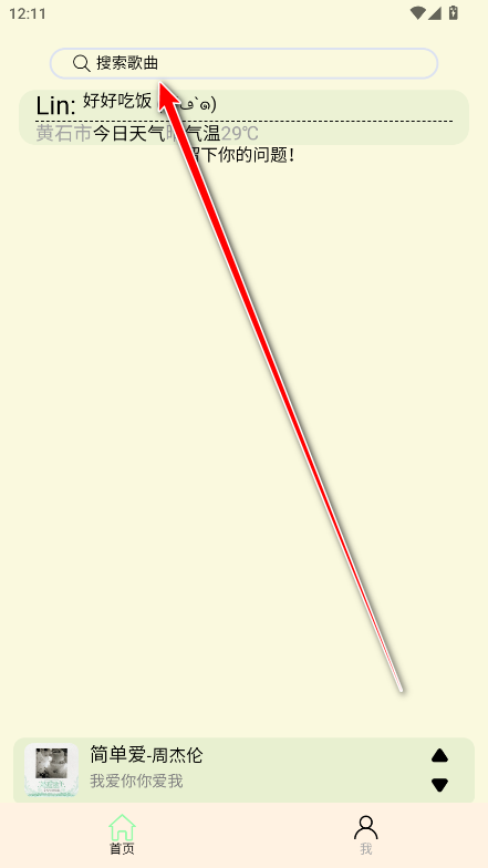 打開yulinlin音樂,點擊首頁上方的搜索框。