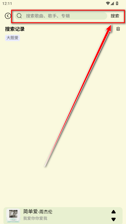 在搜索框中輸入歌曲、歌手、專輯名稱等內容,接著點擊搜索按鈕。