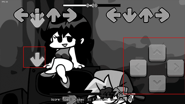 打開周五夜放克米老鼠模組手機(jī)版(1至4階段)游戲后,會出現(xiàn)一只灰色的米老鼠形象,點(diǎn)擊屏幕即可進(jìn)入主界面。界面左側(cè)設(shè)有上下左右方向鍵,右側(cè)則是返回鍵與確認(rèn)鍵。選擇中間功能選項(xiàng)時,需通過點(diǎn)擊上下鍵來操作。