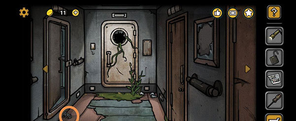 出大門后,手電筒就光榮“下崗”了(可惜不是核能手電筒,這點(diǎn)得差評),點(diǎn)擊前方那塊塌陷的木板,就能拿到扳手。