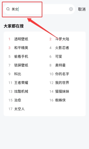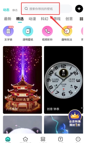 在靜態壁紙頁,點擊被框選的搜索欄。