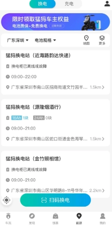 點(diǎn)擊底部的掃碼充電,即可給電動(dòng)車充電。