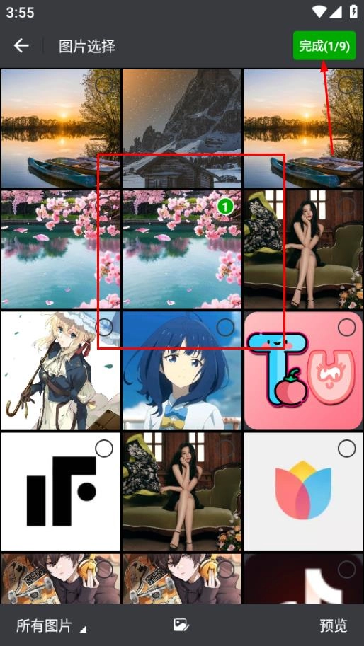 在圖片選擇界面,挑選好需要用于拼圖的圖片后點(diǎn)擊完成按鈕,即可進(jìn)入拼圖的編輯頁(yè)面。