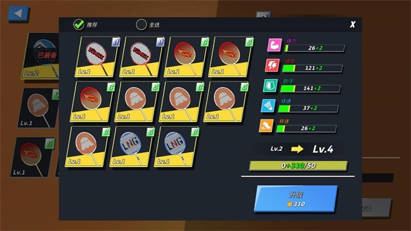 升級主球拍需要消耗其他球拍的經驗,通常是用低級球拍來提升高級球拍的等級。新手們務必留意:可以把你的高級球拍鎖住!鎖住!鎖住!千萬別不小心誤吞了!!