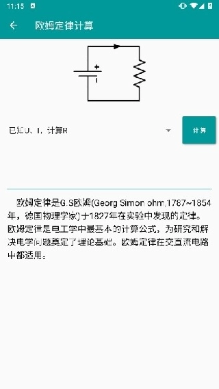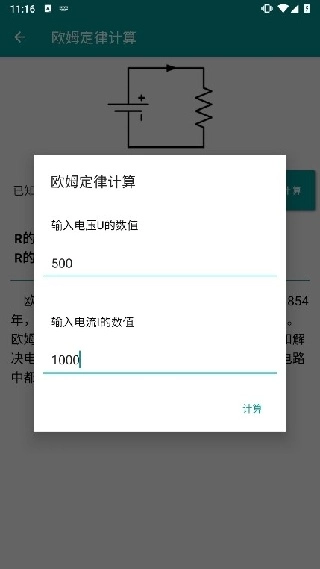比如在電工計算時,只要點擊歐姆定律選項,輸入相應數值再點計算,就能得到結果了。