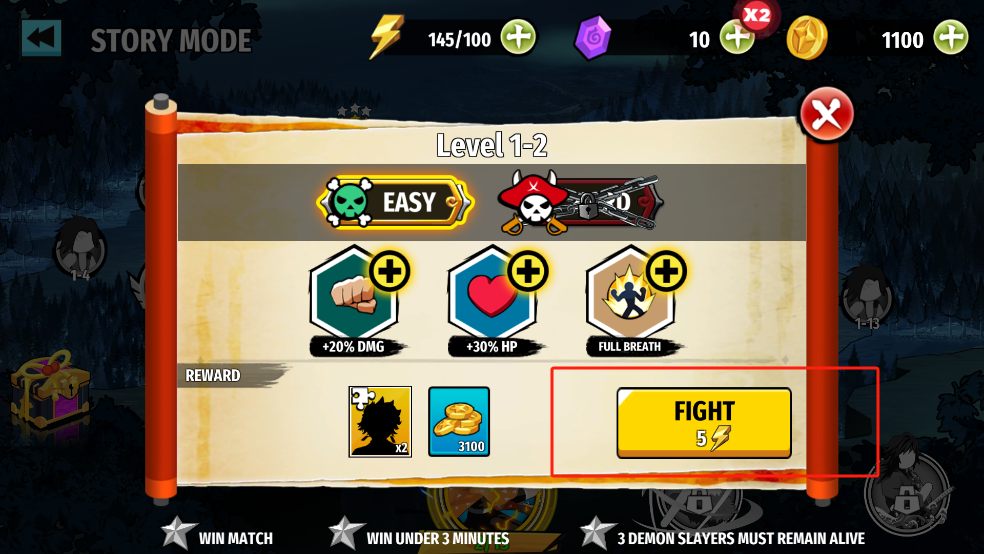 進入游戲開始戰斗,每局戰斗都會消耗體能;