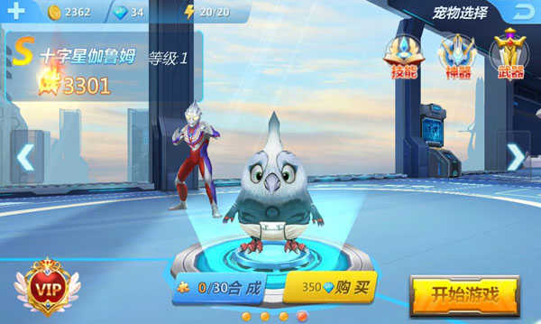 另一個S級寵物是十字星伽魯姆,盡管同屬S級,它的屬性卻比疾風巴萊魯更為強悍。十字星伽魯姆的獲取途徑有兩種:一是集齊30個碎片合成,二是花費350鉆石購買,其獲取難度甚至超過了S級武器!