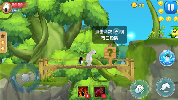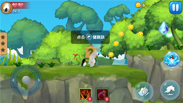 當遇到略高一些的障礙時,我們可以點擊右下角的第二個按鈕來完成跳躍動作。