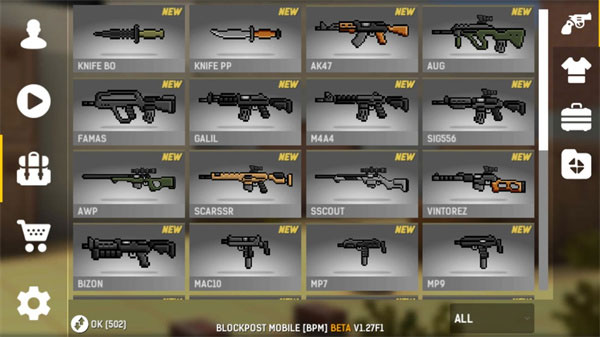點擊右側(cè)的背包商店圖標,這里陳列著各式各樣的武器,大家可以依據(jù)自己的喜好進行挑選。