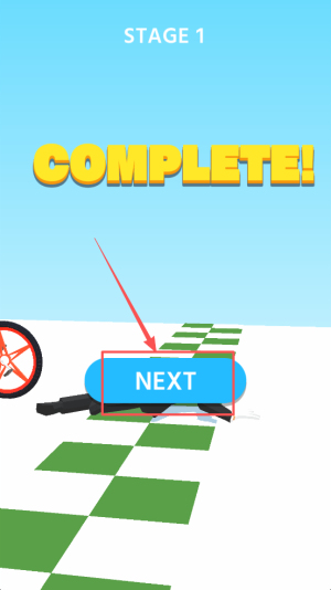 完成后會顯示「STAGE 1 COMPLETE」,點擊「NEXT」按鈕即可進入下一關。