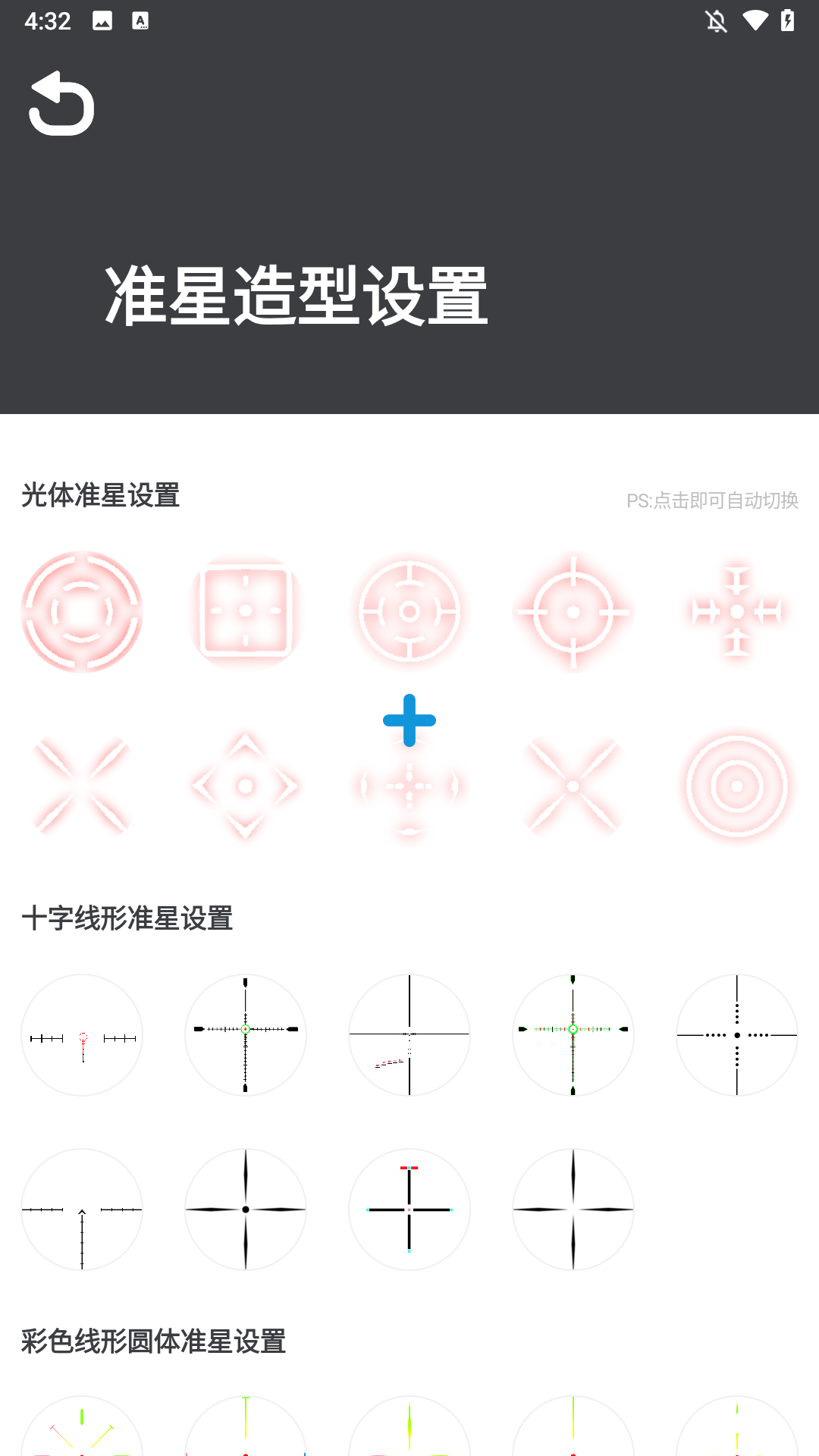 免費(fèi)提供各類(lèi)不同準(zhǔn)星,支持快速設(shè)置,輕松解決瞄準(zhǔn)困難的問(wèn)題。