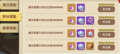 俱樂部累計積分滿足【積分獎勵】的積分要求時,就能領取相應獎勵,【積分獎勵】的最高積分要求是4000000。