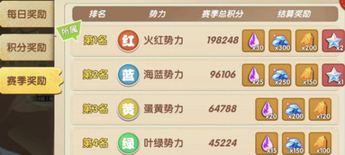 每個賽季結束時,會根據勢力排名發放賽季獎勵。