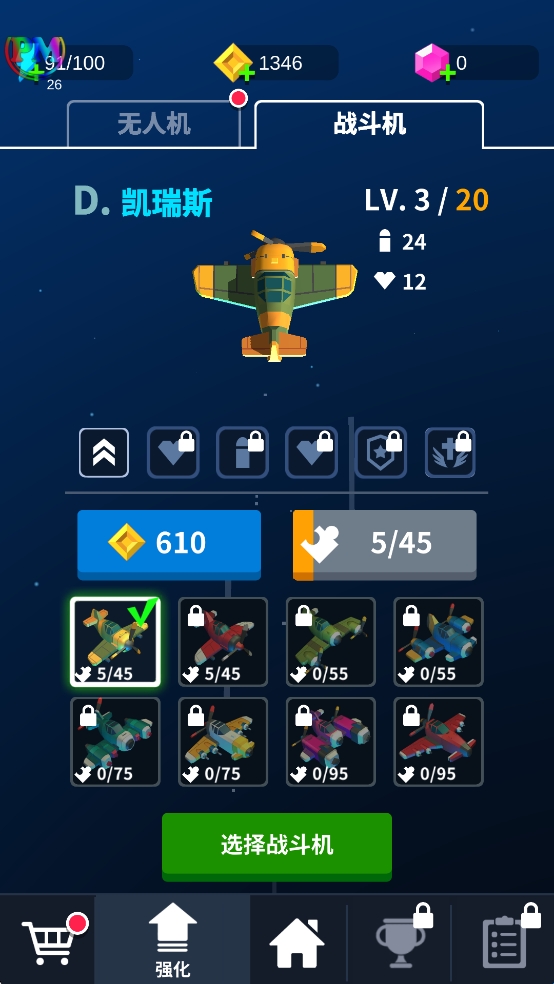 多種戰(zhàn)斗機(jī)和無人機(jī),請通過升級和進(jìn)化獲得新技能。
