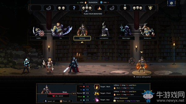 地牢:首先,玩家必須針對一組冒險者來設計自己的防守。檢查他們的屬性和抗性,然后放下最合適的陷阱和怪物來擊敗他們!當你覺得自己的地牢已經準備就緒,就讓他們放馬過來!