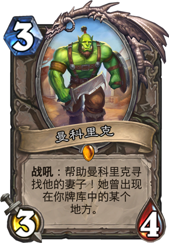 效果:戰(zhàn)吼——幫助曼科里克尋找他的妻子!她曾出現(xiàn)在你牌庫中的某個地方