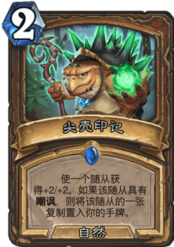 隨著爐石傳說新版本貧瘠之地的錘煉即將上線,官方也公布了新版本中的一些新卡牌,這些卡牌或許會給天梯冒險注入新的活力與新的對局。下面小編就來介紹一下貧瘠之地的錘煉德魯伊新卡尖殼印記的效果