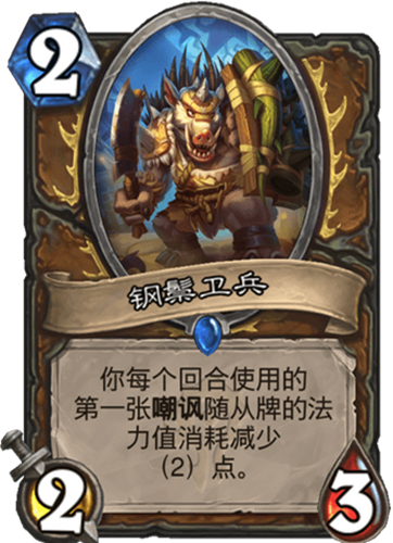 效果:你每個回合使用的第一張嘲諷隨從牌的法力值消耗減少2點