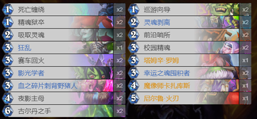 【3】【藍】血之碎片刺背野豬人X2、【4】【橙】魔像師卡扎庫斯、【4】【白】夜影主母X2