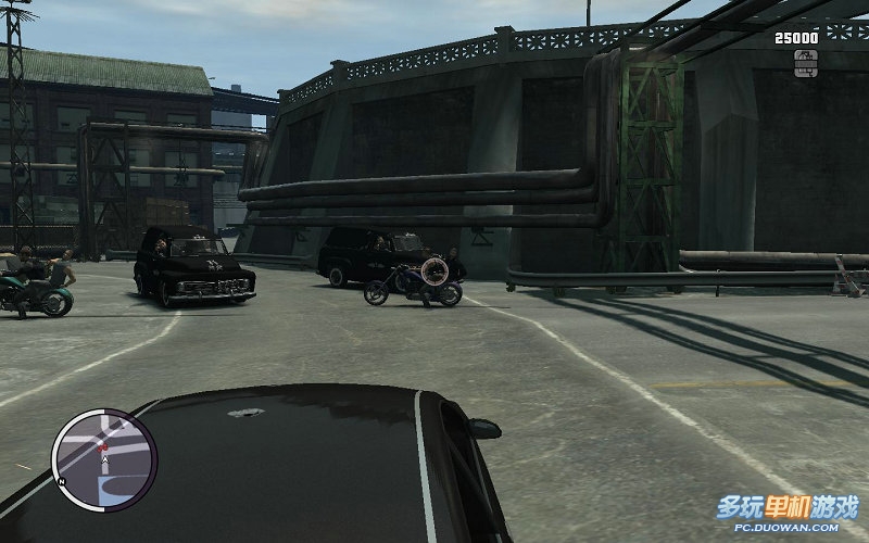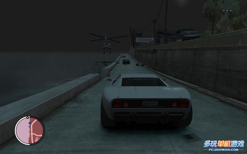 然后離開碼頭區之后;回出現很多警車在路樓攔截你的道路;拼命的扔塑膠炸彈炸毀這些警車即可。想扔遠的話,移動瞄準點向上即可