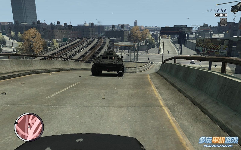 一路會有很多很多的警察出現攔截你,大開殺戒吧;按LMB就是發射APC上面的火炮,這個火炮相當的厲害。2炮就打爆警車